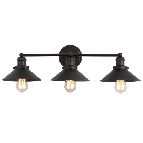 Like a classic barn light but in a modern shape and smaller scale, this classic design features a metal cone shade that conceals the top half of the bulb -- perfect for a clean, industrial look. In a matte orb finish, this sconce is perfectly at home above a bathroom mirror or as extra lighting in kitchens, where your hardware truly shines. Also available in multi-light configurations, the geometric shape adds elegant interest to any space.