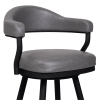 Enhance the bar seating experience for you and your guests with the Justin 26" Counter Height Swivel Vintage Grey Faux Leather Bar Stool with Black Metal Legs from Armen Living. The strong frame is constructed from metal and its cool appeal is further accented by the soft faux leather upholstery. The open back allows for easy breathable seating and makes cleanup a breeze. Engaging with your guests has never been easier thanks to the 360-degree swivel function that adds...