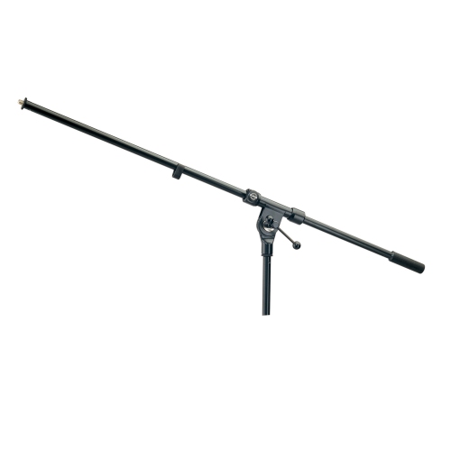 Classic one-piece boom arm with 3/8" thread, and sliding adjustment through non-scratching swivel joint. Easy tightening with T-bar locking screw. Complete with locking washer and plastic handgrip.Boom arm: one-piece designBoom arm length:800 mm Clamping:T-bar locking screw Material:steel Threaded connector:3/8" Type:black Weight:0.8 kg