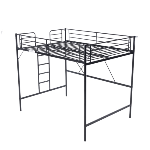 Maximize your bedroom space with our Space-Saving Metal Twin Loft Bed Frame. Designed for functionality and safety, this stylish black loft bed features convenient built-in stairs and a full-length guardrail.