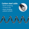 Offering the same level of cut resistance and theft resistance as thicker cables, the carbon steel cable with plastic sheath offers security and greater mobility with 7.5ft (2.3m) of cable that can shrink down to 4in (10.16cm) for easy packing and better mobility.