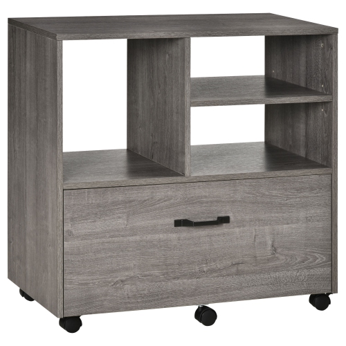 Kepooman Lateral File Station - Mobile Cabinet with Printer Stand for Letter/Legal File & Office Supply Storage, Grey