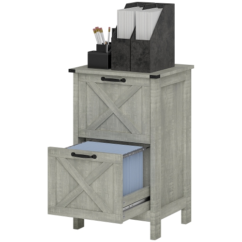Kepooman Vertical Filing Cabinet with 2 Drawers, Rustic Farmhouse Office Storage Cabinet for A4, Letter Size, Stone Grey