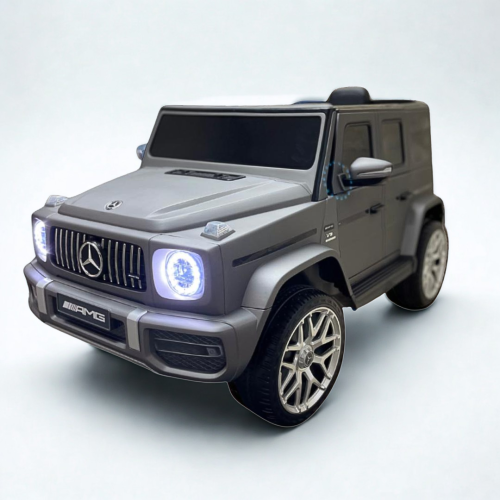 The Licensed Mercedes G63 Kids Ride-On Car is perfect for young drivers ages 1-4 seeking style, safety, and fun. This rechargeable ride on car for kids features a luxurious matte finish, a 12V battery, an eco-leather seat and opening doors. Powered by upgraded 12V dual motors and durable rubber wheels, it provides a smooth ride with speeds of up to 4 km/h.