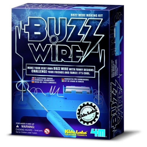 Construct your very own Buzz Wire with funny designs. Learn how an electric circuit is connected. Challenge your friends and family with the exciting Buzz Wire game.  Kit includes: plastic Platform; Bendable metal wire; Battery holder; Insulated electric wire; Electric Buzzer;  Plastic accessories & metal pegs; and Complete illustrated instructions.This kit has been approved and recommended by the Science Museum of London.