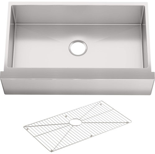 KOHLER K-5415-NA Strive Self-Trimming Undermount Large Single-Bowl Kitchen Sink with Tall Apron, 35 1/2 X 21 1/4", Stainless Steel