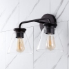 The clean lines of this 2-light vanity fixture give it a pared-down minimalist look. A soft bronze finish and flared, clear glass shades add low-key vintage style over a bathroom mirror. Warm Edison-style LED bulbs provide soft, diffused light for the bathroom or kitchen.