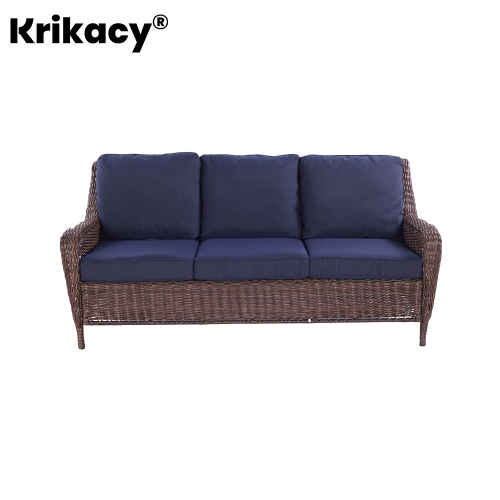 Krikacy 3-Seater Rattan Sofa, All-Weather Handwoven Furniture for Porch/Deck, Blue
