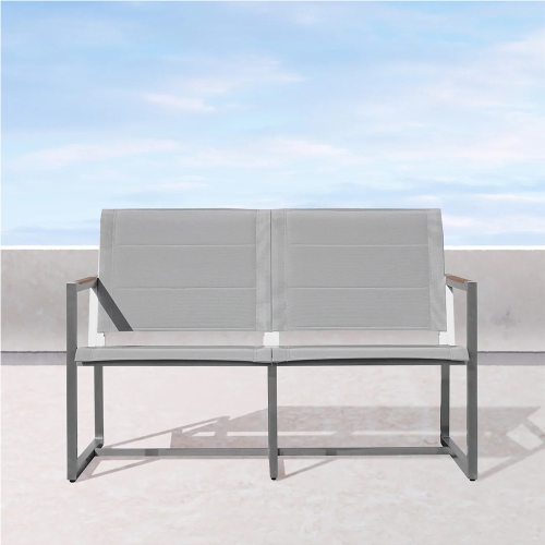 Ultra-sleek, the Pine sling loveseat has a slim, minimal profile. The stainless steel frame is inset with teak wood details to add a touch of organic warmth. Sling seating is roomy and ergonomically angled so it feels supportive, while the Textilene and quick-dry foam wicks moisture and resists the elements. Style into your outdoor living space for a cool refresh.