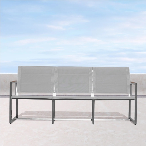 Krikacy Stainless Steel Teak Outdoor Three Seater Sofa, All Weather Furniture, Modern, Silver