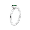 A solitaire oval shaped synthetic created green emerald gemstone sits in sleek sterling silver making this classic stack-able ring the one to wear.