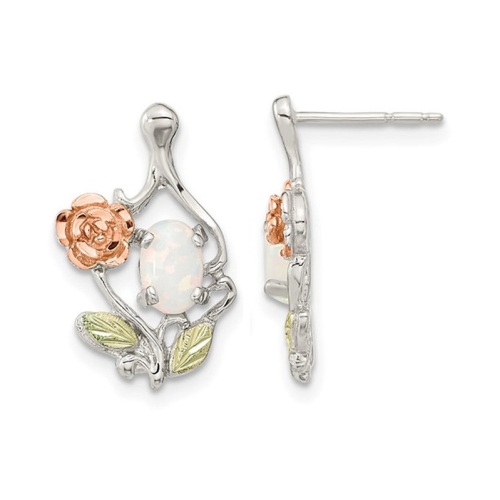 Lab-Created Opal Flower Earrings in Sterling Silver