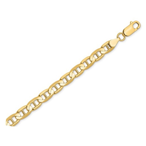 Ladies 6.25mm Concave Anchor Chain Bracelet 7 Inches in 14K Yellow Gold