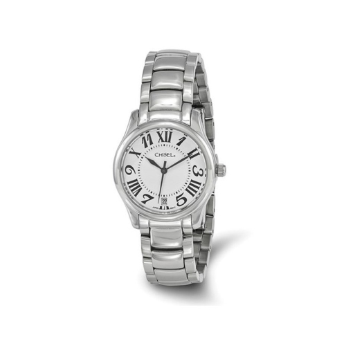 Ladies Chisel Stainless Steel White Dial Analog Watch with Steel Band