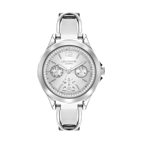 Ladies LC07488.330 Multi-function Silver Watch With A White Leather Strap And A Silver Dial