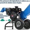 A powerful 7 HP gas-powered chipper designed for garden mulching, yard cleanup, and tree pruning. It features a compact rotor and can handle wood up to 7.6cm in diameter.
