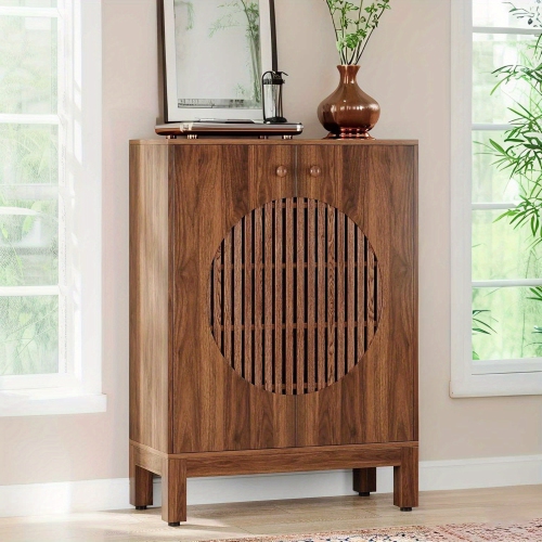 5-Tier Farmhouse Shoe Cabinet with Round Louvered Doors, Farmhouse Kitchen Storage Cabinet with Removable Shelves, 5-Tier en Accent Cabinet for Living Room, Dining Room