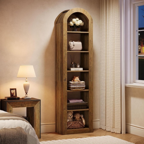 Lantine 74.8-inch Tall Arched Bookshelf, 6-Tier Narrow Open Bookcase, Floor Standing Corner Display Shelves Storage Organizer for Small Space, Home Office, Living Room (1)