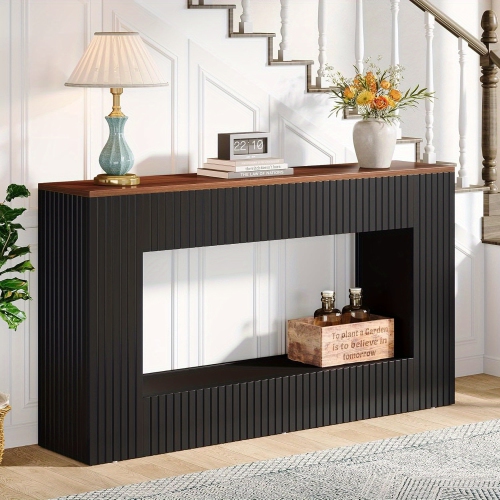 Lantine Modern Console Table, 55-Inch Wood Entryway Table with Storage, Narrow Long Sofa Table Behind Couch Table for Living Room, Foyer, Hallway, Black
