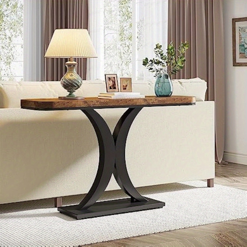 Modern Gold Console Table, 40 inch Narrow Entryway Foyer Table with Geometric Base, Rustic Hallway Accent Table for Living Room, Entrance