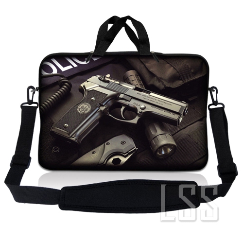 Laptop Skin Shop 8 - 10.2 inch Neoprene Laptop Sleeve Bag Carrying Case with Handle and Adjustable Shoulder Strap - Police Gun Weapons