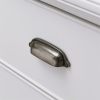 Heavily scaled solid wood elements are softened with beaded edge details and glinting cup pull hardware. Full extension, ball bearing drawer guides offer deep and sturdy drawer storage. The silky smooth painted finish on the hardwood top is outfitted with a flush mounted with an A/C and twin USB charging outlets.Features : Solid hardwood constructionHeavily scaled top and postsBeaded edge detailsPewter cup pull...