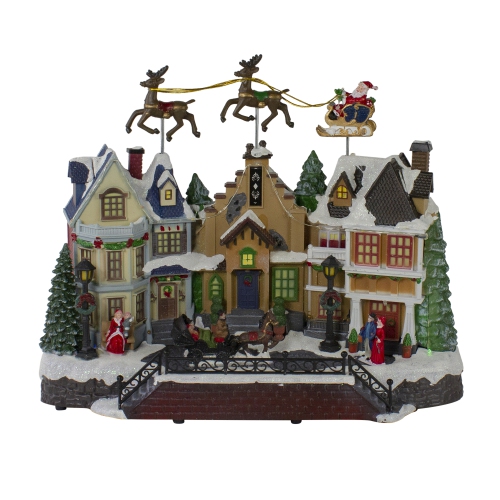 LED Lighted and Animated Christmas Village with Flying Sleigh Decoration - 16"