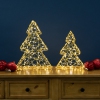 LED lighted gold wire 3D Christmas trees; Set of 2. Pre lit with a total of 350 micro fairy lights. Recommended for indoor or outdoor use