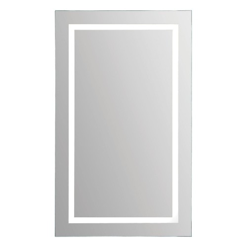A rectangle border of LED light shines through this mirror, making it both a beautiful piece of decor and a functional lit mirror. Can be surface or recess mounted.