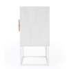 With its clean-lined silhouette and sturdy metal frame, this 2 drawer nightstand offers a modern yet mid-century look . The oversized wood semi-circle drawer pulls are the focal point of this gorgeous white finished nighstand.Features : TransitionalFossil StoneAccent Tables
