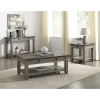 Inspired by the aesthetic of a casual country home and providing functional decorative accent for your living room is the wood occasional table set of the Granby Collection. The two-tone look of the acacia and pine solids base, finished in antique gray, and the oak veneer of the cocktail table’s coffee-finished top in Brown, presents as a harmonious combination of color, perfect for your home. Dark finished metal knob hardware fronts the functional drawers of the cocktail table while providing subtle contrast to the finish of the collection. An open display shelf creates a perfect spot for display of your decorative accessories, while casters allow for ease of movement of the cocktail table within your space.