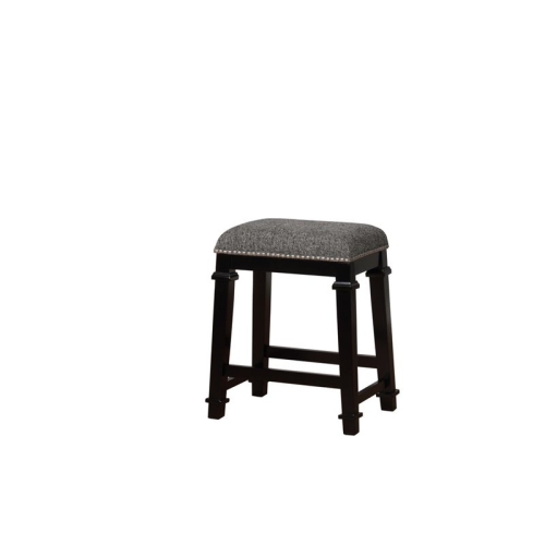 Add traditional seating to your counter or high top table with the Kennedy Backless Stool. Crafted from the wood, the stool features splayed legs accented by decorative wood trim. Finished in a dark black, the seat is upholstered in a black and white tweed fabric and embellished with shiny silver nailheads. Counter Height.Features : Crafted from Crafted from Solid Wood, Rubberwood, Foam and FabricBlack FinishBlack/Gray Tweed U...