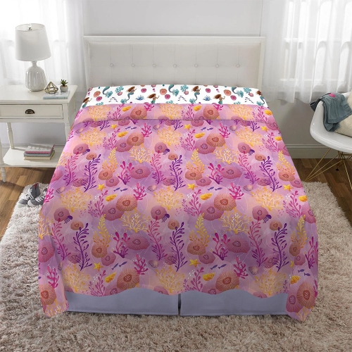 Little Mermaid "Aquatic Outlines" 4 Piece Soft and Cozy Multi-color Full Bedding Sheet Set for Kids