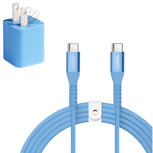 LOGiiX Vibrance 30W USB-C GaN Wall Charger with 1.5m USB-C Cable - Baby Blue