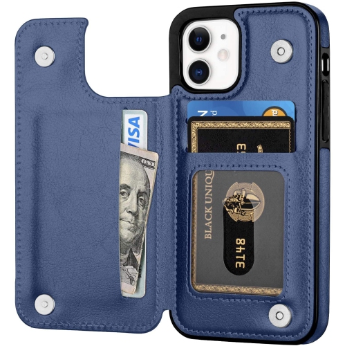 Loris & Case High Quality Leather Back Case Kickstand Shockproof Protective Card Holder Wallet Cover Case for iPhone 13 -Blue (FREE SHIPPING)