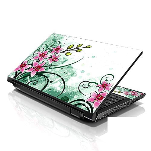 LSS 15 15.6 Inches Laptop Notebook Skin Sticker with 2 Wrist Pads - Reusable Cover Protector Vinyl Sticker Cover Decal Fits 13" - 16" - Pink Flower Floral Pattern