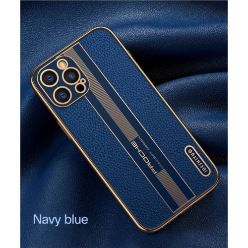 Luxury Soft Silicone Shockproof Back Cover PU Leather Mobile Phone Case For iPhone 12 / 12 Pro (Blue)