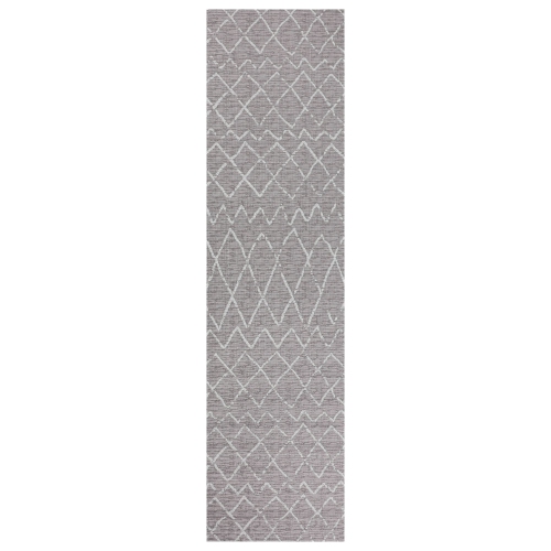 Inspired by vintage Moroccan rugs, our indoor/outdoor rug adds modern Bohemian style to your porch, patio or sunroom. The classic Moroccan pattern has a geometric design of beige diamonds on a field of dark gray.