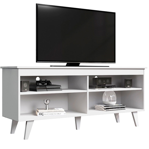 Designed to be a perfect fit in any living room, family room or bedroom adding contemporary styled functionality, the Madesa Entertainment Center TV Stand has four large open shelving areas to place your entertainment equipment.