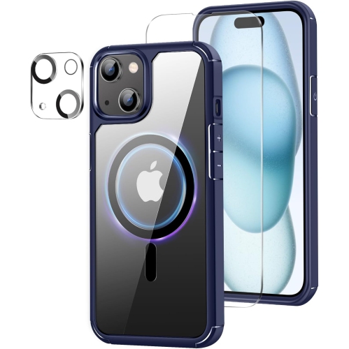 Compatible with MagSafe Accessories iPhone 15 case with a built in magnetic ring that aligns perfectly with MagSafe chargers, offers fast wireless charging. Solid case is made from a durable PC back and flexible TPU bumper provide maximum protection for your phone. (Note: Magnetic phone case is only suitable for accessories compatible with magsafe function)Camera & Screen Protection Comes with screen protector and camera lens protector; Raised lip 1.3mm screen bezels and