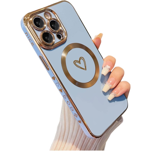Magnetic case for iPhone 13 Pro Max Case for Women, Cute Gold Love Heart Soft MagSafe Case, Raised Full Camera