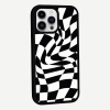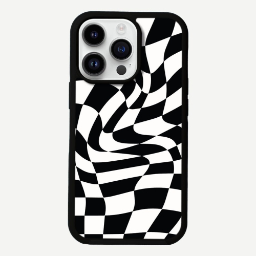MagSafe iPhone 14 Pro Black Swirl Checkerboard Print Case