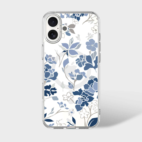 MagSafe iPhone 16 Blue Pattern Clear Case