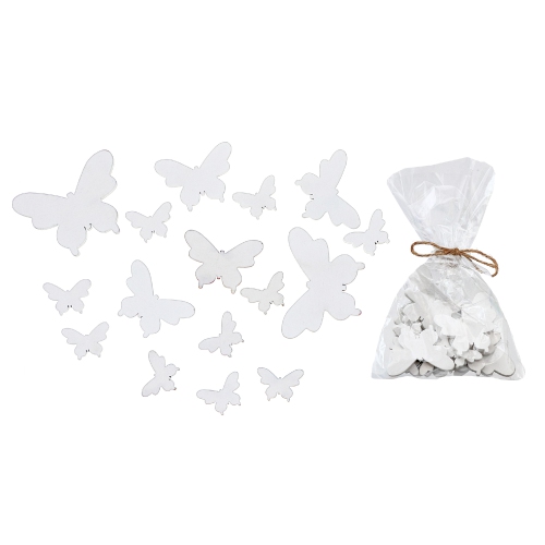 Maison Concepts 16Pc Assorted Size Wood Ornaments Butterfly White - Set of 2