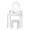 ·1 x Instructions Description:It's time to beautify yourself in the comfort of the elegant vanity table with a cushioned stool and LED Lights mirror.   Perfect combination of solid wood and MDF materials of this dressing table is more stable and doesn't wobble easily when using. The amazing of this vanity table set is that it has an oval mirror with 10 LED bulbs offer enough soft white light without giving out heat. Most importantly you can adjust the brightness to suit different lighting conditions and meet your needs. 360° rotatable mirror can be moved out you can use it as an ordinary writing or laptop table. Spacious tabletop and 4 drawers offer enough space for you to organize your cosmetics jewelry or other items. Exquisite workmanship and elegant design can give your room a unique charm suitable for any decoration in your home. A cushioned stool makes you feel soft and comfortable when you sit on it. You can also use it as an ordinary stool.   If you are looking for it don't hesitate to buy it!