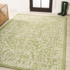 This colorful medallion rug adds rich Bohemian style to an outdoor porch or patio. Varied tones of soft green mingled with a cream pattern give this rug a hand-woven, vintage vibe.