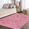 This colorful medallion rug adds rich Bohemian style to an outdoor porch or patio. Varied tones of red mingled with a cream pattern give this rug a hand-woven, vintage vibe.