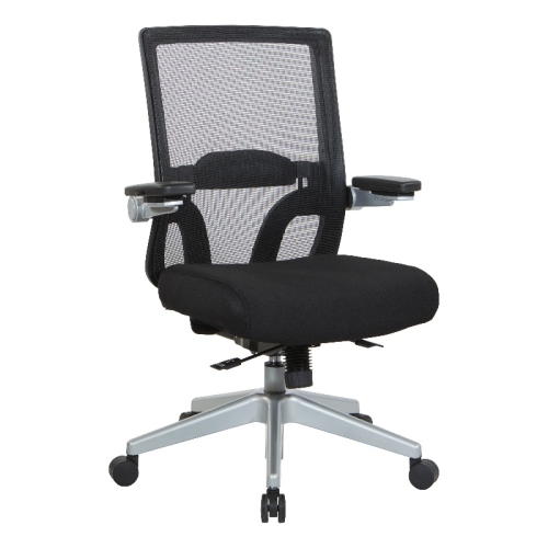Manager's Chair with Breathable Mesh Back and Black Fabric Seat Whether you have a day filled with meetings, or working to beat a deadline, the Space Seating Fully Adjustable Office Chair provides not only professional style but also sophisticated support for all-day comfort. The black vertical mesh back with height adjustable lumbar support keeps you cool and helps prevent back fatigue. The 3-Way PU padded cantilever flip arms ensure flexibility and allow for sup...