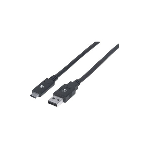 Manhattan SuperSpeed USB C Device Cable - 6.56 ft USB Data Transfer Cable - First End: 1 x Type C Male USB - Second End: 1 x Type A Male USB - 640 MB/s - Shielding - Nickel Plated Contact - Black - 1 Pack