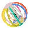 Sure to be a baby favorite for grasping, shaking, teething, and rolling. The easy-to-grasp and colored flexible tubes capture the attention of babies and caregivers, but there’s more to this brightly designed ball than meets the eye. A little shake of this colorful baby toy reveals a soft whistling sound and clacking of the hard plastic rings surrounding the center rod.